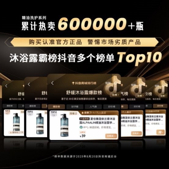 據(jù)統(tǒng)計(jì),依蘭花精油洗護(hù)累計(jì)銷量60萬+瓶,已躋身抖音洗發(fā)水沐浴露多個(gè) 榜單的TOP10。